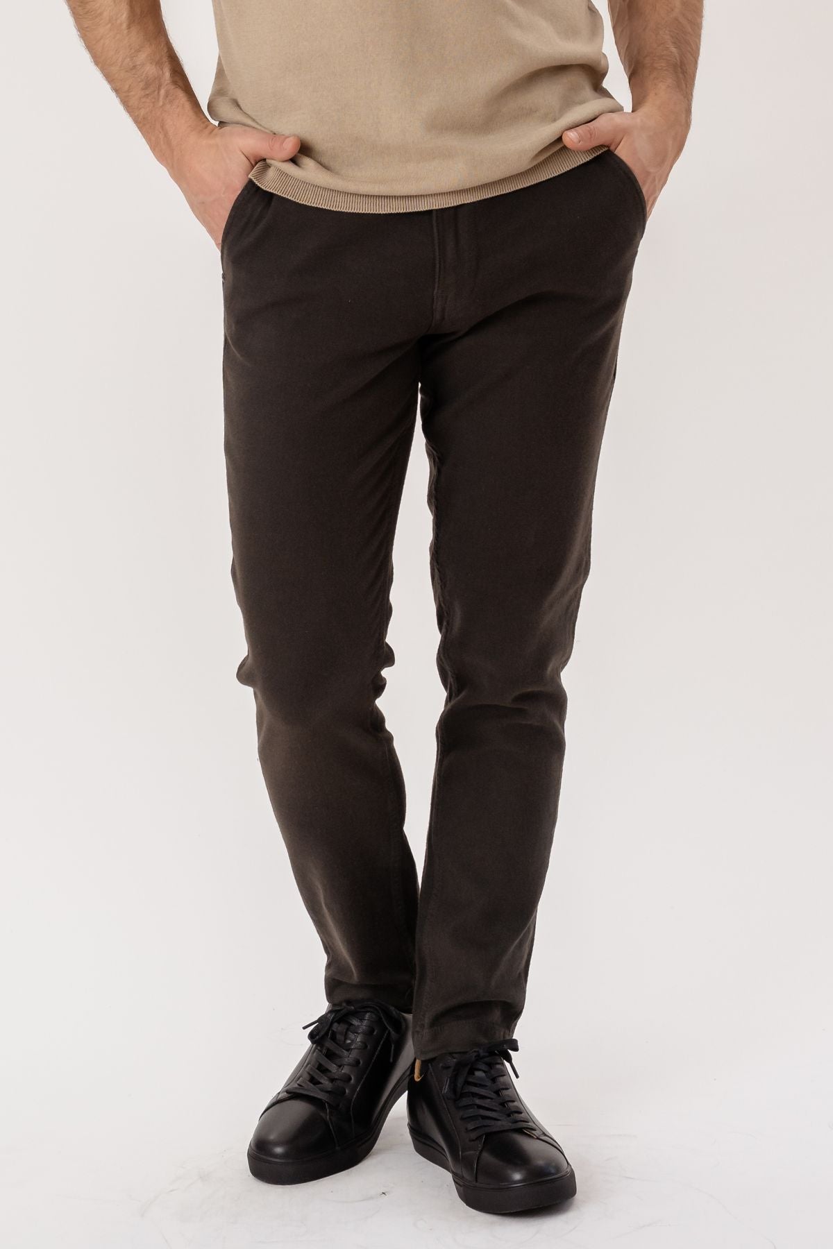 Fabriqués à partir d'un mélange soigneusement sélectionné de 98 % de coton et 2 % d'élasthanne, ces pants offrent l'équilibre parfait entre douceur et élasticité. La couleur marron foncé offre une base polyvalente qui se marie bien avec divers hauts et chaussures, ce qui en fait un élément indispensable de votre garde-robe.
