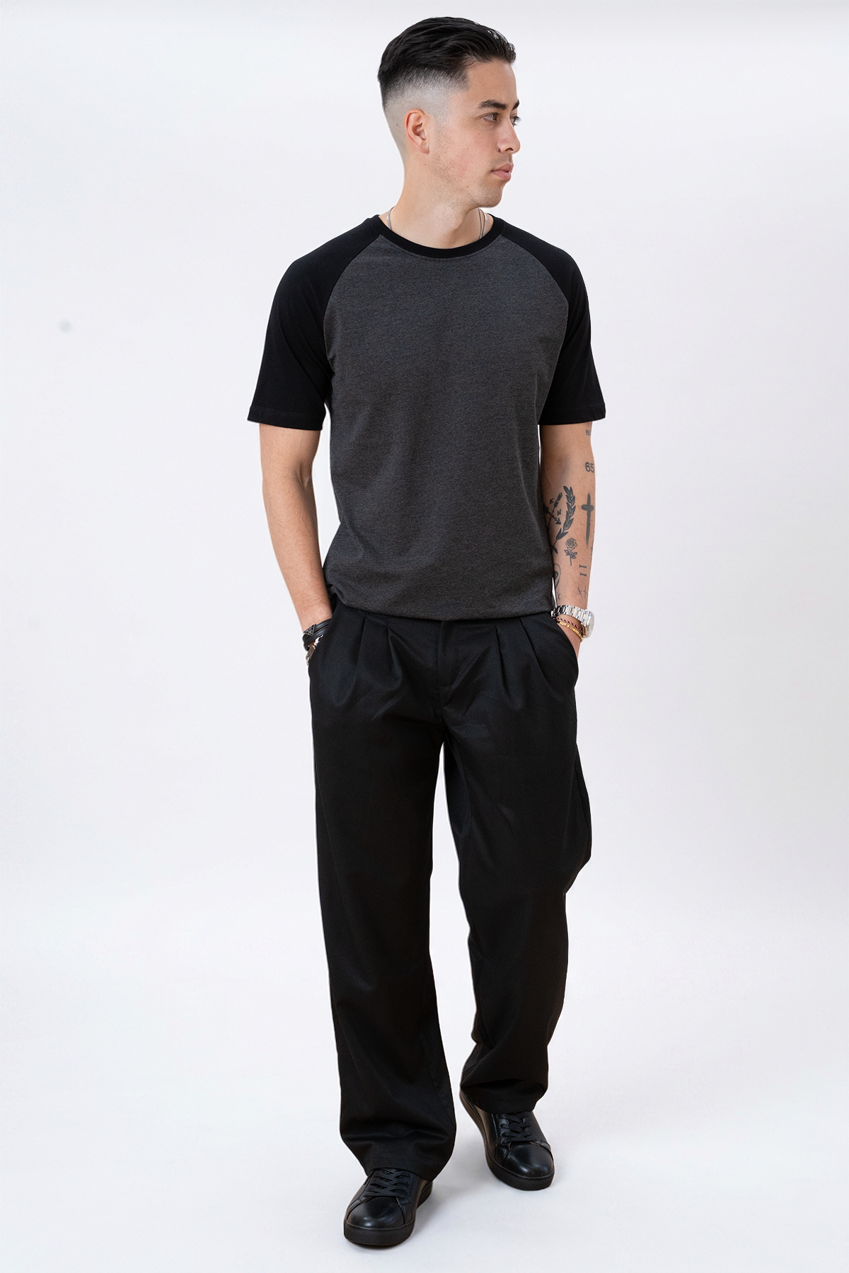 Basic T-shirt Raglan - Black-Army: Casual Cool avec un style d'inspiration militaire